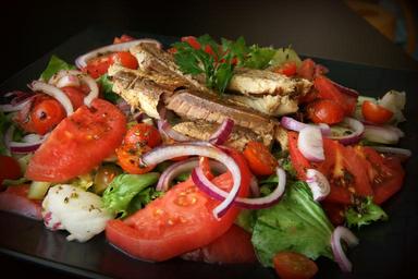 Keywords: salad eating food kitchen pig iron health healthy food tasty dish cooking onion tomatoes lettuce vegetables eat