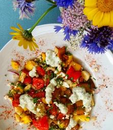 Keywords: salad frisch healthy eat vitamins food mixed salad garden delicious vegetables nature vegetarian nutrition salad plate vegan bio mango paprika feta cheese