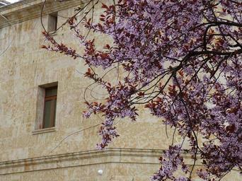 Keywords: salamanca spain spring tree blossom bloom spring awakening cherry blossom bloom blütenmeer flowering twig flowers home facade historically