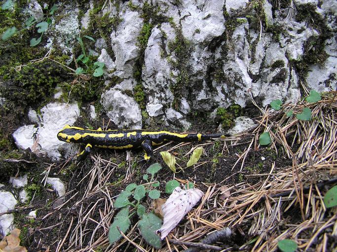 | Keywords: Salamandra salamandra 1.jpg A Fire Salamander in his natural habitat on the afternoon of a rainy day Encountered at approximately 900 m 2950 feet above sea level on the South slope of the Weissenstein a mountain on the Jura range in Switzerland on the territory of Oberdorf a municipality in the canton of Solothurn I took this photograph on October 6 2004 with an Olympus C750 UZ digital camera The camera was stabilized to allow for a long exposure time without blur Fortunately the Salamander didn't move during the shot Ein Feuersalamander in seinem natürlichen Lebensraum am Nachmittag eines regnerischen Tages Angetroffen auf ca 900 m ü M am Südhang des Weissensteins ein zum Schweizer Jura gehörender Gebirgszug auf dem Gebiet der Gemeinde Oberdorf im Kanton Solothurn Fotografiert am 6 Oktober 2004 mit einer Olympus C750 UZ Digitalkamera Die Kamera was stabilisiert um eine lange Verschlusszeit ohne Verwackeln zu ermöglichen Der Salamander hat sich glücklicherweise während der Aufnahme nicht bewegt Own 2005-03-16 Joshua Lutz Public domain Salamandra salamandra |