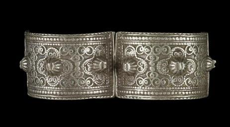 | Keywords: Salim - Bracelet - Walters 572316 - Open.jpg The bracelet is made of two equal halves and has three serrated halfglobules on each side The decoration combines spirals and circles; a triple bead-molded band frames the décor Inside of the bracelet is an engraved inscription in Hebrew which names the silversmith in Hebrew Sa lim xxx century 19 silver cast remains of green glass Outer diam cm 5 2 ; Inner diam 1 15/16 x W 1 7/16 in 4 9 x 3 7 cm accession number 57 2316 80920 Mr Benjamin Zucker Zucker Family Trust and Mr Derek Content New York and London by purchase Walters Art Museum Joint gift to the Walters Art Museum Baltimore and the Israel Museum Jerusalem by Mr Benjamin Zucker and Mr Derek Content in honor of Mrs Barbara Zucker and Mrs Amanda Content 2010 Engraving Hebrew Sa lim xxx place of origin northern Yemen Walters Art Museum license Jewellery in the Walters Art Museum South Arabian art in the Walters Art Museum Salim silversmith Media contributed by the Walters Art Museum needs category review |