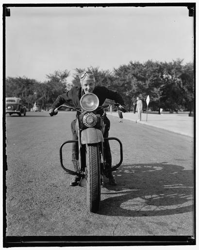 | Keywords: Sally halterman.tif Photograph en First of fair sex to obtain motorcycle license in Capital Washington D C Sept 15 Although she weights only 88 pounds--one-third of the machine she rides Mrs Sally Halterman is the first woman to be granted a license to operate a motorcycle in the District of Columbia She is 27 years old and 4 feet 11 inches tall Immediately after receiving her permit Mrs Halterman was initiated into the D C Motorcycle Club - the only girl ever to be accorded this honor Harris Ewing photographer 1937 September 15 LOC-image hec 23379 1 negative glass 4 x 5 in or smaller accession number LC-DIG-hec-23379 digital file from original negative Call Number LC-H22- D-2364 P P Rights Advisory No known restrictions on publication Title from unverified caption data received with the Harris Ewing Collection Date based on date of negatives in same range Gift; Harris Ewing Inc 1955 General information about the Harris Ewing Collection is available at http //hdl loc gov/loc pnp/pp hec Temp note Batch five Sally Halterman jpg PD-Harris-Ewing Unidentified motorcycles Washington D C in the 1930s Females with motorcycles Black and white photographs of motorcycles Front views of motorcycles September 1937 1937 in Washington D C Motorcycle helmets Vintage motorcycles Motorcycle headlamps Uploaded with UploadWizard |