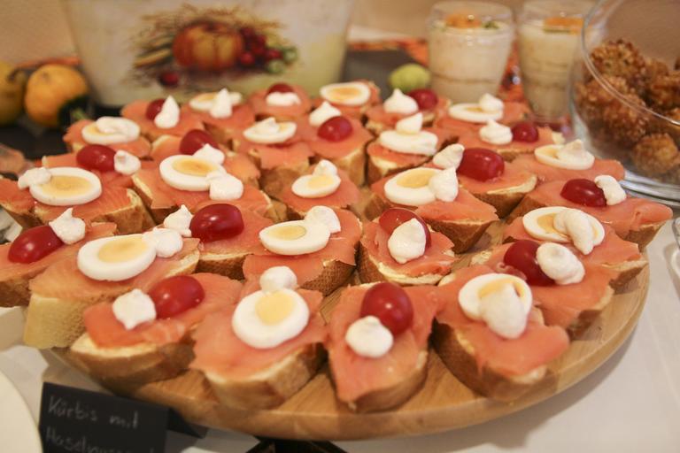 Keywords: salmon fish smoked salmon salmon cut chunks finger food snack festival offer edible sandwiches bread food birthday homemade garden party colorful rolls party delicious eat benefit from bbq celebration plate tasty frisch
