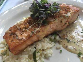 Keywords: salmon seafood fish food fresh gourmet healthy meal dinner restaurant plate fillet cuisine sea lunch