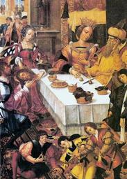 | Keywords: Salomé apresentando a cabeça do santo.jpg pt O mesmo mensageiro que recebera a cabeça de S João entrega-a agora a Salomé passando de um quadro para o outro Ninguém dá muita atenção ao Santo que foi sacrificado quase como se quisessem ignorar ou estivessem arrependidos do que tinham feito Na sala ao fundo homens conversam como se nada tivesse acontecido; o mesmo se passa com o rei e a rainha que estão distraidamente à mesa ou as crianças que brincam em primeiro plano Mesmo Salomé parece dar mais atenção ao mensageiro do que a própria cabeça do Santo a quem tanto desejou a morte Apesar da acção ter decorrido no século I os personagens estão vestidos como se tudo acontecesse no século XVI quando o quadro foi pintado Isso permite-nos saber qual era a moda e o gosto desse século 2013-01-11 10 55 44 http //www ttt ipt pt Creator Gregório Lopes PD-old-100 Uploaded with UploadWizard Gregório Lopes Salome with the head of John the Baptist Herodias |