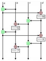 Keywords: Salsa20 ChaCha variant.png en Diagram of the quarterround function for ChaCha encryption ru Схема основного п еоб азования алго итма шиф ования ChaCha own Bn7 2010-11-18 Ciphers Symmetric cipher diagrams
