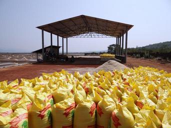 Keywords: salt pan brine salt bags bagging salt works water evaporation drying seawater pile heap pan pond gokarna india