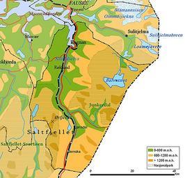 Keywords: Saltdal map.jpg en Map of Saltdal municipality Norway Own Jensens 2008-12-06 Maps of Nordland Saltdal