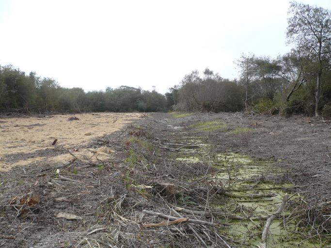 | Keywords: SaltRiverCurrentChannel.jpg en A view of the cleared area awaiting excavation and the remaining small channel of the Salt River Humboldt County California View is looking West The chipped stray on the cleared area is mandated to prevent erosion During construction this entire width will be excavated own Ellin Beltz 2013-10-19 Salt River California Photographs by Ellin Beltz |