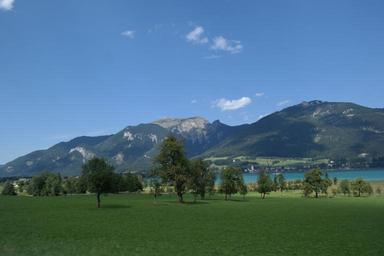 Keywords: salzburg lake wolfgang meadow mountains trees