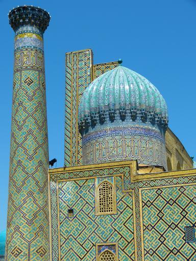 Keywords: samarkand registan square uzbekistan sher dor madrassah sandy place space madrasahs minaret turquoise majolica ceramic tile
