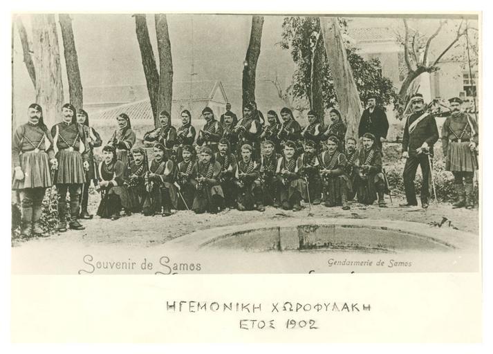 | Keywords: Samian Gendarmerie 1902.jpg en Men of the Princely Gendarmerie of Samos in 1902 wih the then-commander of the Gendarmerie Stamatis G Stamatis second from right el Άντρες της Ηγεμονικής Χωροφυλακής Σάμου το 1902 μαζί με το Διοικητλη τους Σταμάτη Γ Σταμάτη δεύτερος α ό δεξιά 1902 http //culture samos gr/c/portal_public/layout p_l_id 1 9 p_p_id CIV_MEDIA_SEARCH p_p_action 0 p_p_state maximized p_p_mode view _CIV_MEDIA_SEARCH_struts_action 2Fext 2Fciv 2FmediaSearch 2FloadPictureCardFormAction _CIV_MEDIA_SEARCH_mainid 1685 ΣΑ ΙΑΚΗ ΛΑΟΓΡΑΦΙΑ author Custom license marker 2012 05 22 PD-old-70 Anonymous works are PD after 70 years per Greek and EU law 1902 in Greece Samian Gendarmerie |