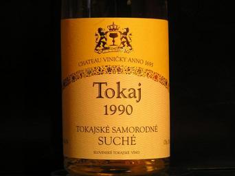 Keywords: Samorodnesuche.JPG Bottle of Tokaj samorodne dry wine author Legnaw 2004-11-04 own assumed Legnaw trademark Wine labels Tokaj wines of Slovakia 1990 number