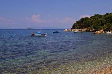 Keywords: samos island greece holiday sea beach water clouds landscape outlook panorama summer tourism blue sky blue sky view mountains nature clear water coast turquoise bank mediterranean rock wide horizon rest booked boot fishing boat fish