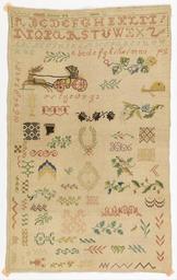 | Keywords: Sampler - Google Art Project (4165531).jpg 6938587 Unknown /collection/cooper-hewitt-national-design-museum/artwork/sampler-unknown/4165531/ 75214 author /collection/cooper-hewitt-national-design-museum/ Cooper-Hewitt National Design Museum 3644669 http //www cooperhewitt org/ /collection/cooper-hewitt-national-design-museum/artwork/sampler-unknown/4165531/ 1775 late 18th century Medium silk embroidery on linen foundationTechnique cross stitch on plain weave ex coll Mrs Henry E Coe Eva Johnston Coe 4165531 False 1799 1941-69-150 http //collection cooperhewitt org/view/objects/asitem/id/75214 Bequest of Mrs Henry E Coe Sampler 1770 1800 late 18th century False 0 630859375 Object sampler-unknown Sampler s H x W 44 x 27 cm 17 5/16 x 10 5/8 in Medium silk embroidery on linen foundationTechnique cross stitch on plain weave ex coll Mrs Henry E Coe Eva Johnston Coe special url_id 6AHrSJYa2dG5jw PD-old-100 Google Art Project works by unknown artist Textiles in the Cooper “Hewitt Smithsonian Design Museum 18th-century samplers Google Art Project works in Cooper-Hewitt Smithsonian Design Museum |