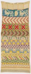 Keywords: Sampler - Google Art Project (6848385).jpg 6938587 Unknown /collection/cooper-hewitt-national-design-museum/artwork/sampler-unknown/6848385/ 176967 author /collection/cooper-hewitt-national-design-museum/ Cooper-Hewitt National Design Museum 3644669 http //www cooperhewitt org/ /collection/cooper-hewitt-national-design-museum/artwork/sampler-unknown/6848385/ 1800 early 19th century Medium silk embroidery on linen foundationTechnique embroidered in satin running eyelet and four-sided stitches with withdrawn element work on plain weave foundation 735 6848385 False 1825 1981-28-360 http //collection cooperhewitt org/view/objects/asitem/id/176967 Bequest of Gertrude M Oppenheimer Sampler 1800 1830 w310 x h735 cm early 19th century False 0 421875 Object sampler-unknown Sampler s 310 H x W 73 x 30 5 cm 28 3/4 x 12 in Dechido lo hizo Mariana beginning and end abraded away Medium silk embroidery on linen foundationTechnique embroidered in satin running eyelet and four-sided stitches with withdrawn element work on plain weave foundation special url_id YAEb1u3xWoEG0A PD-old-100-1923 Google Art Project works by unknown artist Textiles in the Cooper “Hewitt Smithsonian Design Museum 19th-century samplers Google Art Project works in Cooper-Hewitt Smithsonian Design Museum