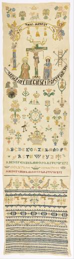 | Keywords: Sampler - Google Art Project (5492579).jpg 6938587 Unknown /collection/cooper-hewitt-national-design-museum/artwork/sampler-unknown/5492579/ 75163 author /collection/cooper-hewitt-national-design-museum/ Cooper-Hewitt National Design Museum 3644669 http //www cooperhewitt org/ /collection/cooper-hewitt-national-design-museum/artwork/sampler-unknown/5492579/ 1749 1749 Medium silk and metal-wrapped silk embroidery linen foundationTechnique two-sided cross marking cross long-armed cross stem satin running double running eyelet and herringbone stitches on plain weave ex coll Mrs Henry E Coe Eva Johnston Coe 5492579 False 1749 1941-69-100 http //collection cooperhewitt org/view/objects/asitem/id/75163 Bequest of Mrs Henry E Coe Sampler 1740 1750 w356 cm 1749 False 0 2890625 Object sampler-unknown Sampler s 356 H x W 134 x 36 2 cm 52 3/4 x 14 1/4 in Embroiderd Samplers 1984 embroidered text translated Jesus my comfortJesus the beginner of hope and life Medium silk and metal-wrapped silk embroidery linen foundationTechnique two-sided cross marking cross long-armed cross stem satin running double running eyelet and herringbone stitches on plain weave ex coll Mrs Henry E Coe Eva Johnston Coe embroidered 'D D H' special url_id 9QGbiosBv0dBDA PD-old-100 Google Art Project works by unknown artist Textiles in the Cooper “Hewitt Smithsonian Design Museum 1740s samplers Google Art Project works in Cooper-Hewitt Smithsonian Design Museum 1749 works |