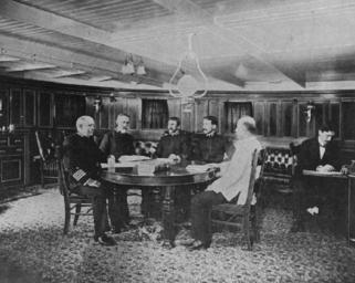 | Keywords: Sampsonboard.jpg USS Maine Court of Inquiry 1898 Members of the Navy Court of Inquiry examining Ensign Wilfrid V Powelson on board the U S Light House Tender Mangrove in Havana Harbor Cuba circa March 1898 Those seated around the table include from left to right Captain French E Chadwick Captain William T Sampson Lieutenant Commander William P Potter Ensign W V Powelson Lieutenant Commander Adolph Marix Photograph copied from Uncle Sam's Navy 12 April 1898 Original caption Photo NH 46764 MAINE Court of Inquiry removed caption Comision de enquisa estadounidense Cuba 1898 Commission d'enquĂȘte amĂ©ricaine Cuba 1898 http //www history navy mil/photos/events/spanam/events/maineskg htm http //www history navy mil/photos/images/h46000/h46764 jpg 1898 DEPARTMENT OF THE NAVY -- NAVAL HISTORICAL CENTER PD-USGov USS Maine ACR-1 |