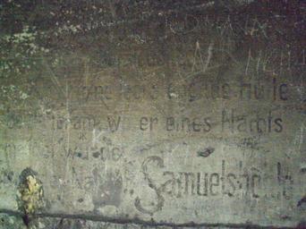 Keywords: Samuel 4.jpg cs Původní německý nápis v Samuelově jeskyni Sloup v Čechách own Zákupák 2010-09-01 Samuelova jeskyně
