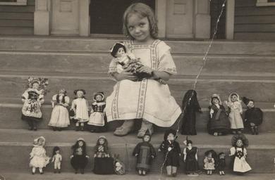 Keywords: Alice Fairfax, with part of doll collection. Circa 1913-1915. girl dolls child steps paristexas samuelbellmaxey