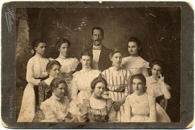 Keywords: Class of 10 girls with man (teacher) Paris, Texas, c. 1900