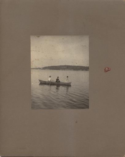 Keywords: "Nagawicka, Wisconsin" - 3 young women in a rowboat, ca. 1895