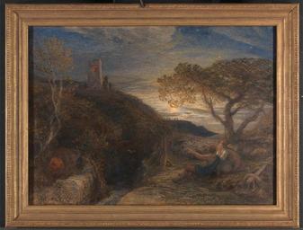 | Keywords: Samuel Palmer - The Lonely Tower - Google Art Project.jpg Inscribed in artist's hand on label on back in pen and brown ink center left No 1 The Lonely Tower Or let my lamp at midnight hour Be seen in some high lonely tower Where I may oft outwatch the Bear With thice great Hermes Samuel Palmer Inscription _Signed_and_Dated Not signed not dated Not on View Watercolor gouache and gum arabic on London board a high-quality pasteboard sheet made of Whatman's finest drawing paper roots sunset sheep Milton John 1608 “1674 poet and polemicist light stars time Classical prehistoric shepherd shepherd stones tower building division cave trees standing stones figures landscape poem special url_id lgFQJBSDZx1QHg PD-old-100-1923 1881 Watercolor paintings by Samuel Palmer Google Art Project works by Samuel Palmer |