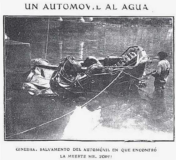 Keywords: Samuel-Zopfi-IV-1909-Ginevra-recupero-auto-precipitata-nel-Rodano.jpg it Fotografia del recupero dell'automobile Fiat di 30 cavalli precipitata il 26 3 1909 nel fiume Rodano a Ginevra Svizzera in cui trovò la morte il suo giovane proprietario Samuele Zopfi 1879-1909 figlio di Samuele Zopfi 1828-1888 imprenditore svizzero trapiantato a Redona Bergamo Italia e di Rosina Graf 1853-1904 sua terza moglie Samuel Zopfi che viveva a Ginevra presso la sorella Rosina Zopfi sposata al farmacista Jules Muelberger conduceva la vettura a folle velocità secondo i testimoni e rimase incastrato tra le lamiere dell'auto annegando Gli altri due passeggeri che viaggiavano con lui Eduard Vibert meccanico e Hans Leutzinger studente di 20 anni invece si salvarono riportando solo lievi ferite essendo stati sbalzati in acqua lontano dalla vettura Fonte delle notizie Gazette de Lausanne 26 3 1909 pagina 3 Fonte delle notizie Journal de Geneve 27 3 1909 pagina 4 Fonte della fotografia Actualidades de Madrid 14 4 1909 pagina 14 http //hemerotecadigital bne es/datos1/numeros/internet/Madrid/Actualidades 20 28Madrid 201908 29/1909/190904/19090414/19090414_00000 pdf search 22zopfi 22 page 14 Actualidades Madrid 14 4 1909 pagina 14 ignoto scanned by Albertomos 1909-04-14 PD-old Zopfi Samuele 1879-1909 Obituaries of Zopfi family Fiat 30 HP Crashed vehicles 1900-1950 Automobile accidents Actualidades Madrid Zopfi 1909 obituaries of Spain ImageNote 1 68 5 404 39 539 490 2 UN AUTOMOVIL AL AGUA ImageNoteEnd 1 ImageNote 2 36 440 455 49 539 490 2 GINEBRA SALVAMENTO DEL AUTOMOVIL EN QUE ENCONTRO ™ LA MUERTE MR ZOPFI Ginevra recupero dell ™automobile in cui trovò la morte il sig Zopfi ImageNoteEnd 2 |
