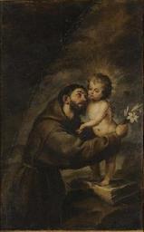 | Keywords: San Antonio de Padua con el Niño Jesús (Museo de Bellas Artes de Sevilla).JPG La forma del lienzo es triangular y fue pintado con intención de ser contemplado a gran altura Y en el lienzo aparecen San Antonio de Padua de medio cuerpo y arrodillado y el Niño Jesús que se halla de pie y apoyado en un libro Ca 1665-1666 oil canvas Size cm 120 190 Institution Museo de Bellas Artes Seville http //ceres mcu es/pages/Main object history exhibition history credit line accession number CE0120P http //ceres mcu es/pages/Main PD-old-100 Paintings of Saint Anthony of Padua by Bartolomé Esteban Murillo Paintings by Bartolomé Esteban Murillo in the Museo de Bellas Artes de Sevilla 17th-century paintings in the Museo de Bellas Artes de Sevilla Uploaded with UploadWizard |