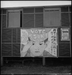 | Keywords: San Bruno, California. Buildings of the Tanforan Center are plastered at this time with all manner . . . - NARA - 537902.jpg Scope and content The full caption for this photograph reads San Bruno California Buildings of the Tanforan Center are plastered at this time with all manner of locally devised posters incident to the election of five each of the five precincts General notes 537902 Local identifier 210-G-C597 Department of the Interior War Relocation Authority 02/16/1944 - 06/30/1946 NARA-Author Lange Dorothea 1895-1965 Photographer 1372774 <br /> Still Picture Records Section Special Media Archives Services Division NWCS-S National Archives at College Park 8601 Adelphi Road College Park MD 20740-6001 1942-06-16 Record group Record Group 210 Records of the War Relocation Authority 1941 - 1989 Record group ARC 537 Central Photographic File of the War Relocation Authority compiled 1942 - 1945 Series ARC 536000 File unit File unit ARC Variant control numbers NAIL Control Number NWDNS-210-G-C597 Other versions <gallery> File San_Bruno _California _Buildings_of_the_Tanforan_Center_are_plastered_at_this_time_with_all_manner_ _ _ _-_NARA_-_537902 tif tif File San_Bruno _California _Buildings_of_the_Tanforan_Center_are_plastered_at_this_time_with_all_manner_ _ _ _-_NARA_-_537902 jpg jpg </gallery> NARA-cooperation PD-USGov Dorothea Lange Tanforan Assembly Center June 1942 in the United States |