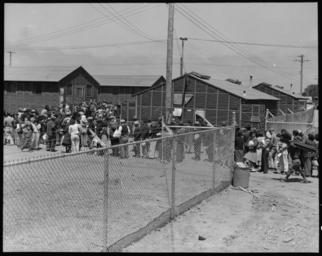 | Keywords: San Bruno, California. Supper time, Meal times are the big events of the day within an assembly ce . . . - NARA - 537922.jpg Scope and content The full caption for this photograph reads San Bruno California Supper time Meal times are the big events of the day within an assembly center This is a line-up of evacuees waiting for the B shift at 5 45pm They carry with them their own dishes and cutlery in bags to protect them from dust They themselves individually wash their own dishes after each meal since dish washing facilities in the mess halls proved inadequate Most of the residents prefer this second shift because they sometimes get second helpings but the groups are rotated each week There are eighteen mess halls in camp which together accomodate 8 000 persons three times a day All food is prepared and served by evacuees General notes 537922 Local identifier 210-G-C622 Department of the Interior War Relocation Authority 02/16/1944 - 06/30/1946 NARA-Author Lange Dorothea 1895-1965 Photographer 1372774 <br /> Still Picture Records Section Special Media Archives Services Division NWCS-S National Archives at College Park 8601 Adelphi Road College Park MD 20740-6001 1942-06-16 Record group Record Group 210 Records of the War Relocation Authority 1941 - 1989 Record group ARC 537 Central Photographic File of the War Relocation Authority compiled 1942 - 1945 Series ARC 536000 File unit File unit ARC Variant control numbers NAIL Control Number NWDNS-210-G-C622 Other versions <gallery> File San_Bruno _California _Supper_time _Meal_times_are_the_big_events_of_the_day_within_an_assembly_ce_ _ _ _-_NARA_-_537922 tif tif File San_Bruno _California _Supper_time _Meal_times_are_the_big_events_of_the_day_within_an_assembly_ce_ _ _ _-_NARA_-_537922 jpg jpg </gallery> NARA-cooperation PD-USGov Dorothea Lange Mess halls |