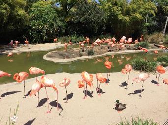 Keywords: san diego flamingo water bird america zoo lake balance summer wildlife