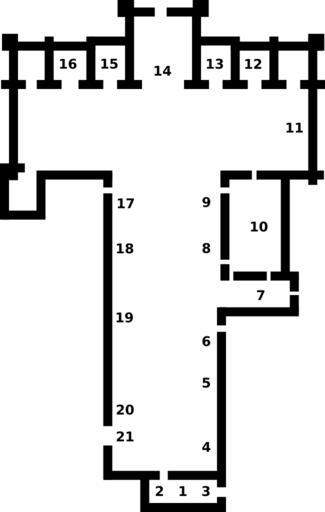 | Keywords: San Domenico Siena Apr 2008 (17).svg Plan of the Basilica of San Domenico Siena 1 Vault Chapel 2 Mattia Preti Canonisation of Saint Catherine of Siena 3 Andrea Vanni Saint Catherine of Siena and a devotee 4 Stefano Volpi Apparition of the Virgin to the Blessed Andrea Gallerani 5 Alessandro Casolani Nativity of the Virgin 6 Relics of Saint Catherine of Siena 7 Chapel of Saint Catherine of Siena 8 Francesco di Vannuccio Virgin and the Child Sodoma God the Father and Saints 9 Francesco di Giorgio Adoration of the Shepherds 10 Sacristy 11 Altar of the Blessed Ambrogio Sansedoni 12 German Chapel 13 Matteo di Giovanni Madonna and Child with Saints Jerome and John the Baptist 14 Benedetto da Maiano Ciborium and Angels 15 Francesco di Valdambrino Saint Anthony Abbot Pietro Lorenzetti Virgin and Child with knights 16 Guido da Siena Majesty 17 Sodoma 15 Scenes from the New Testament Unknown San Tommaso d'Aquino in Cattedra affresco 18 Rutilio Manetti Saint Anthony Abbot liberating a possessed woman 19 Sebastiano Folli Mystic nuptials of Saint Catherine of Alexandria 20 Francesco Vanni Saint Hyacinth rescuing a statue of the Virgin and a monstrance from a fire 21 Church main door San Domenico Siena Apr 2008 17 JPG 2008-04 Original image Gryffindor<br> SVG version Noieraieri Other versions <gallery>File San Domenico Siena Apr 2008 17 JPG</gallery> Plans of the Basilica of San Domenico Siena |