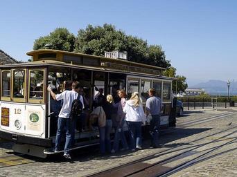 Keywords: san francisco cable car crowd transportation tourist attraction tracks california usa city