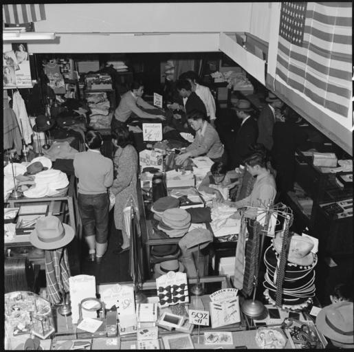 | Keywords: San Francisco, California. Customers buy merchandise in a store operated by a proprietor of Japanes . . . - NARA - 536042.jpg Scope and content The full caption for this photograph reads San Francisco California Customers buy merchandise in a store operated by a proprietor of Japanese ancestry during a pre-evacuation sale Evacuees of Japanese ancestry will be housed in War Relocation Authority centers for the duration General notes 536042 Local identifier 210-G-A65 Department of the Interior War Relocation Authority 02/16/1944 - 06/30/1946 NARA-Author Lange Dorothea 1895-1965 Photographer 1372774 <br /> Still Picture Records Section Special Media Archives Services Division NWCS-S National Archives at College Park 8601 Adelphi Road College Park MD 20740-6001 1942-04-04 Record group Record Group 210 Records of the War Relocation Authority 1941 - 1989 Record group ARC 537 Central Photographic File of the War Relocation Authority compiled 1942 - 1945 Series ARC 536000 File unit File unit ARC Variant control numbers NAIL Control Number NWDNS-210-G-A65 Other versions <gallery> File San_Francisco _California _Customers_buy_merchandise_in_a_store_operated_by_a_proprietor_of_Japanes_ _ _ _-_NARA_-_536042 tif tif File San_Francisco _California _Customers_buy_merchandise_in_a_store_operated_by_a_proprietor_of_Japanes_ _ _ _-_NARA_-_536042 jpg jpg </gallery> NARA-cooperation PD-USGov Dorothea Lange Japanese American internment processing in San Francisco |