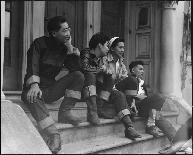 | Keywords: San Francisco, California. High School boys look over Buchanan Street scene, prior to evacuation of . . . - NARA - 537603.jpg Scope and content The full caption for this photograph reads San Francisco California High School boys look over Buchanan Street scene prior to evacuation of residents of Japanese ancestry Evacuees will be housed in War Relocation Authority centers for the duration General notes 537603 Local identifier 210-G-C256 Department of the Interior War Relocation Authority 02/16/1944 - 06/30/1946 NARA-Author Lange Dorothea 1895-1965 Photographer 1372774 <br /> Still Picture Records Section Special Media Archives Services Division NWCS-S National Archives at College Park 8601 Adelphi Road College Park MD 20740-6001 1942-04-04 Record group Record Group 210 Records of the War Relocation Authority 1941 - 1989 Record group ARC 537 Central Photographic File of the War Relocation Authority compiled 1942 - 1945 Series ARC 536000 File unit File unit ARC Variant control numbers NAIL Control Number NWDNS-210-G-C256 Other versions <gallery> File San_Francisco _California _High_School_boys_look_over_Buchanan_Street_scene _prior_to_evacuation_of_ _ _ _-_NARA_-_537603 tif tif File San_Francisco _California _High_School_boys_look_over_Buchanan_Street_scene _prior_to_evacuation_of_ _ _ _-_NARA_-_537603 jpg jpg </gallery> NARA-cooperation PD-USGov Japantown San Francisco in 1942 Dorothea Lange |