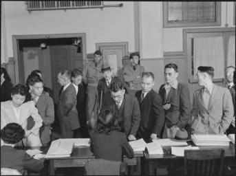 | Keywords: San Francisco, California. The residents of Japanese appear at 2031 Bush Street, for information on . . . - NARA - 536464.jpg Scope and content The full caption for this photograph reads San Francisco California The residents of Japanese appear at 2031 Bush Street for information on evacuation Evacuees will be housed in War Relocation Authority centers for the duration General notes 536464 Local identifier 210-G-A574 Department of the Interior War Relocation Authority 02/16/1944 - 06/30/1946 NARA-Author Lange Dorothea 1895-1965 Photographer 1372774 <br /> Still Picture Records Section Special Media Archives Services Division NWCS-S National Archives at College Park 8601 Adelphi Road College Park MD 20740-6001 1942-04-25 Record group Record Group 210 Records of the War Relocation Authority 1941 - 1989 Record group ARC 537 Central Photographic File of the War Relocation Authority compiled 1942 - 1945 Series ARC 536000 File unit File unit ARC Variant control numbers NAIL Control Number NWDNS-210-G-A574 Other versions <gallery> File San_Francisco _California _The_residents_of_Japanese_appear_at_2031_Bush_Street _for_information_on_ _ _ _-_NARA_-_536464 tif tif File San_Francisco _California _The_residents_of_Japanese_appear_at_2031_Bush_Street _for_information_on_ _ _ _-_NARA_-_536464 jpg jpg </gallery> NARA-cooperation PD-USGov Dorothea Lange Japanese American internment processing in San Francisco |