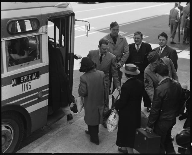 | Keywords: San Francisco, California. A scene in the Japanese quarter of San Francisco on the first day of eva . . . - NARA - 537742.jpg Scope and content The full caption for this photograph reads San Francisco California A scene in the Japanese quarter of San Francisco on the first day of evacuation from this area About 660 merchants shop-keepers tradespeople and professional people left their homes on this morning for the Civil Control Station from which they were dispatched by bus to the Tanforan Assembly center This photograph shows a family being checked into the bus by an official The onlooker is a representative of the Federal Reserve bank who has for weeks been assisting and advising families of this area as to the disposition of their property General notes 537742 Local identifier 210-G-C418 Department of the Interior War Relocation Authority 02/16/1944 - 06/30/1946 NARA-Author Lange Dorothea 1895-1965 Photographer 1372774 <br /> Still Picture Records Section Special Media Archives Services Division NWCS-S National Archives at College Park 8601 Adelphi Road College Park MD 20740-6001 1942-04-29 Record group Record Group 210 Records of the War Relocation Authority 1941 - 1989 Record group ARC 537 Central Photographic File of the War Relocation Authority compiled 1942 - 1945 Series ARC 536000 File unit File unit ARC Variant control numbers NAIL Control Number NWDNS-210-G-C418 Other versions <gallery> File San_Francisco _California _A_scene_in_the_Japanese_quarter_of_San_Francisco_on_the_first_day_of_eva_ _ _ _-_NARA_-_537742 tif tif File San_Francisco _California _A_scene_in_the_Japanese_quarter_of_San_Francisco_on_the_first_day_of_eva_ _ _ _-_NARA_-_537742 jpg jpg </gallery> NARA-cooperation PD-USGov Dorothea Lange Japanese American internment processing in San Francisco |
