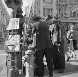 | Keywords: San Francisco Newspapers After Pearl Harbor Attack.jpg Corner of Montgomery and Market Streets Monday morning December 8 1941 after Japanese attack on Pearl Harbor San Francisco California Shows people looking at newspaper headlines Photo by John Collier via Library of Congress website http //www loc gov/pictures/item/fsa2000052846/PP/; high res TIF converted to jpg border cropped and contrast adjusted before uploading to Wikimedia Commons 1941-12-08 John Collier PD-USGov 1941 in San Francisco December 1941 in the United States Pearl Harbor attack Fashion in 1941 1941 newspapers Newspapers of San Francisco Fire hydrants in California 1941 photographs |