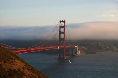 Keywords: san francisco usa america california united states golden gate bridge tourist site red blue clouds landscape water us