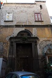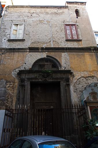 Keywords: San Girolamo dei Ciechi.jpg it Prospetto in degrado Distacco di conci lapidei lungo l'architrave del portale; distacco di intonaci e patina biologica own Pinotto992 San Girolamo dei Ciechi Naples
