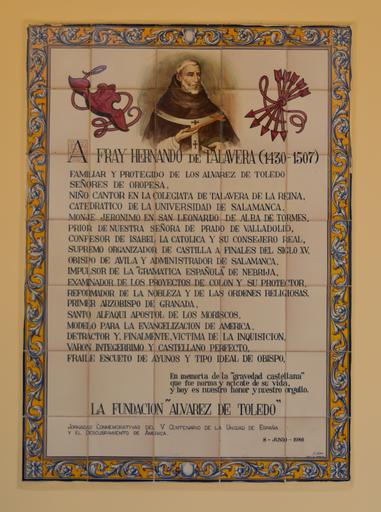 | Keywords: San Jeronimo monastery Plaque Hernando de Talavera Granada Andalusia Spain.jpg Hernando de Talavera monastery of san Jerónimo Granada Andalusia Spain Hernando de Talavera monastère de Saint-Jérôme Andalousie Espagne 2014-08-12 17 59 28 own Jebulon other versions 37 178853 -3 604203 cc-zero Hernando de Talavera Plaques in Granada Plaques referencing 1986 Monks in art Monastery of San Jerónimo Granada Yoke of Ferdinand II of Aragon Bundle of arrows of Isabella of Castile Quality images of Granada Quality images by Jebulon QualityImage |