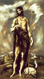 | Keywords: San Juan Bautista, de El Greco (Museo de Bellas Artes de Valencia).jpg Artwork creator El Greco La obra representa al profeta San Juan Bautista precursor del Mesías y decapitado por orden del rey Herodes Antipas circa 1600 1605 oil on canvas Size cm 63 67 Museo de Bellas Artes de Valencia http //www cult gva es/mbav/data/es06050 htm object history exhibition history credit line Lleva la firma de su autor en caracteres griegos domenikos theotokopoulos accession number 499 place of creation http //www digibis com/elgreco_digimus/es/musobjects/2597 html ctx freetext 3A15 PD-old-100 Saint John the Baptist by El Greco Museu de Belles Arts de València Mannerist paintings in Spain 1600s paintings from Spain |