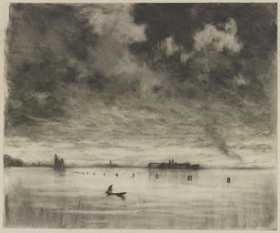 | Keywords: San Lazzaro degli Armeni ca. 1905.jpg en 1 drawing on cream paper Russian chalk ; sheet 24 5 x 29 5 cm Italy Venice View across water lone gondola in foreground diagonal row of pilings leading to sailboat on left thin horizon of buildings beyond all under blackened sky 2013-07-01 13 54 13 http //www loc gov/pictures/item/2007665302/ Pennell Joseph 1857-1926 Custom license marker 2013 07 01 PD-old Uploaded with UploadWizard Check categories 2013 November 2 San Lazzaro degli Armeni Venice |