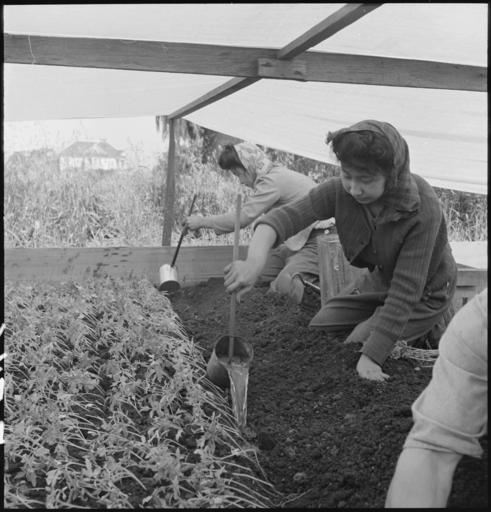 | Keywords: San Leandro, California. Watering young plants on a farm in Alameda County, California, prior to ev . . . - NARA - 536437.jpg Scope and content The full caption for this photograph reads San Leandro California Watering young plants on a farm in Alameda County California prior to evacuation Evacuees of Japanese ancestry will be housed in War Relocation Authority centers for the duration General notes 536437 Local identifier 210-G-A546 Department of the Interior War Relocation Authority 02/16/1944 - 06/30/1946 NARA-Author Lange Dorothea 1895-1965 Photographer 1372774 <br /> Still Picture Records Section Special Media Archives Services Division NWCS-S National Archives at College Park 8601 Adelphi Road College Park MD 20740-6001 1942-04-26 Record group Record Group 210 Records of the War Relocation Authority 1941 - 1989 Record group ARC 537 Central Photographic File of the War Relocation Authority compiled 1942 - 1945 Series ARC 536000 File unit File unit ARC Variant control numbers NAIL Control Number NWDNS-210-G-A546 Other versions <gallery> File San_Leandro _California _Watering_young_plants_on_a_farm_in_Alameda_County _California _prior_to_ev_ _ _ _-_NARA_-_536437 tif tif File San_Leandro _California _Watering_young_plants_on_a_farm_in_Alameda_County _California _prior_to_ev_ _ _ _-_NARA_-_536437 jpg jpg </gallery> NARA-cooperation PD-USGov Japanese American internment processing in San Leandro California Agriculture in California Women at work in California Dorothea Lange Black and white photographs of women |