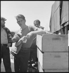 | Keywords: San Leandro, California. Youth on Relief. Waiting in line for surplus commodities - NARA - 532133.tif Scope and content General notes 532133 Local identifier 119-CAL-70 Federal Security Agency National Youth Administration 07/01/1939 - 09/17/1942 NARA-Author Partridge Rondal 1917- Photographer 8464464 <br /> Still Picture Records Section Special Media Archives Services Division NWCS-S National Archives at College Park 8601 Adelphi Road College Park MD 20740-6001 1940-05-03 Record group Record Group 119 Records of the National Youth Administration 1934 - 1945 Record group ARC 448 Study of Youth Photographs compiled 1940 - 1940 Series ARC 532065 File unit File unit ARC Variant control numbers NAIL Control Number NWDNS-119-CAL-70 yes Other versions NARA-cooperation PD-USGov Adolescent boys in the United States 1940 Crates California National Youth Administration 1940 Food relief in the United States California Great Depression in the United States California San Leandro California 1940 People of Alameda County California 1940 People of the United States in 1940 CA 1940 in California A May 1940 Rondal Partridge NARA images of Alameda County California 1940 Black and white photographs of boys California Black and white portrait photographs of men at three-quarter length CA Black and white photographs of California 1940 |
