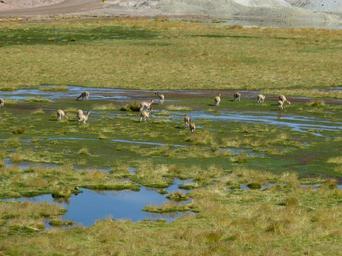 Keywords: san pedro de atacama chile south america desert atacama nature dry stone san pedro el tatio lagoon water lama guanaco flock graze eat andes