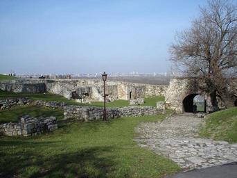 Keywords: Sanac defer.jpg Remaining of moat bridge and gate in Despots town with Deferdars gate Belgrade fortress 2006-04-27 own assumed CrniBombarder Kalemegdan Moats in Serbia Defterdar's Gate