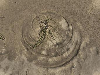 Keywords: sand beach blade of grass wind image circles in the sand drawn sand beach traces excerpt of the beach dunes art artfully artistically natural artwork texture ornament background form structure
