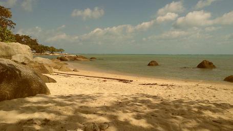 Keywords: sand beach clouds sky sea nature holiday stones tracks in the sand shadow